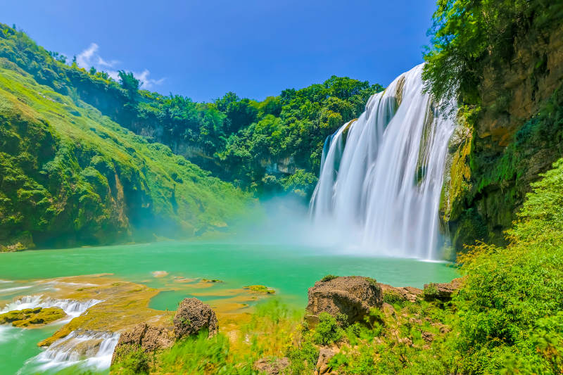 瀑布飞流 绿意盎然
