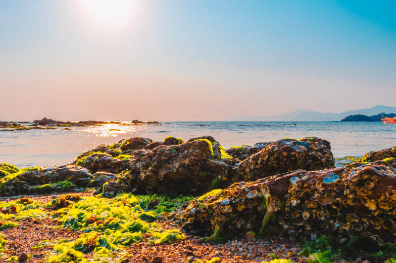 海边岩石与夕阳美景