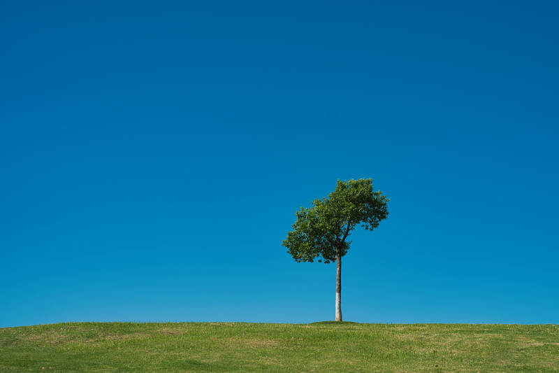 孤树蓝天绿草地