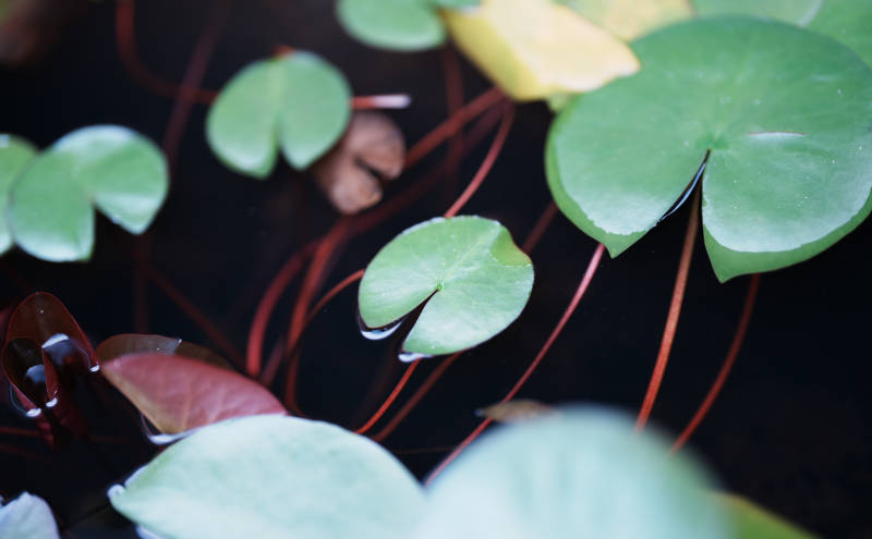 池塘中的荷叶与水草