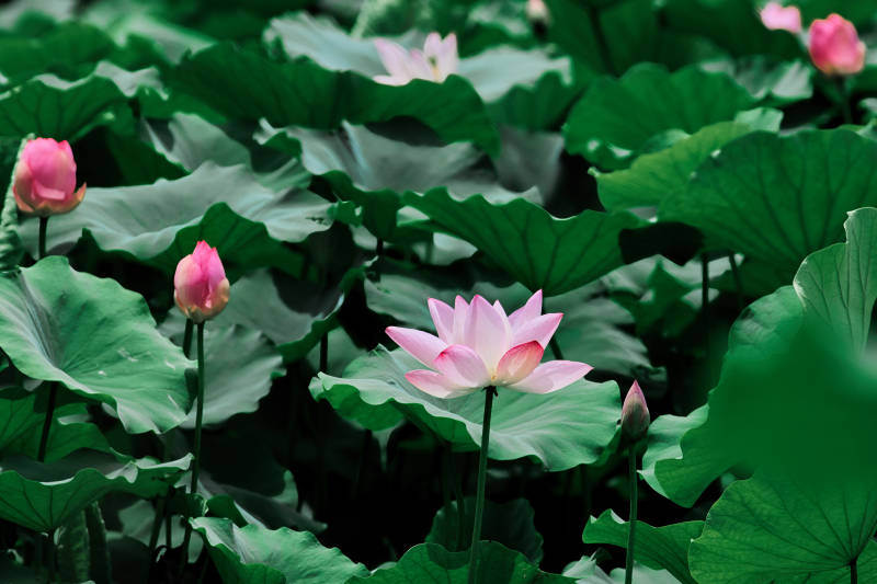 荷塘月色 粉莲绽放