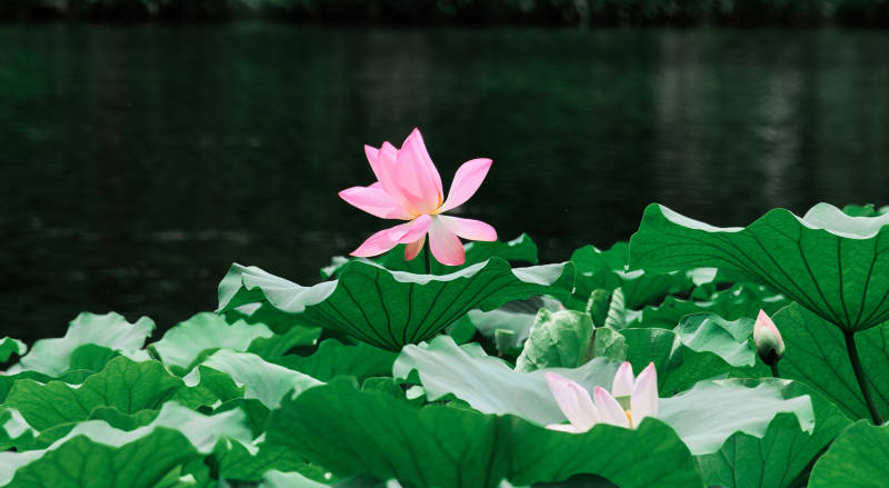 池塘中的莲花盛开