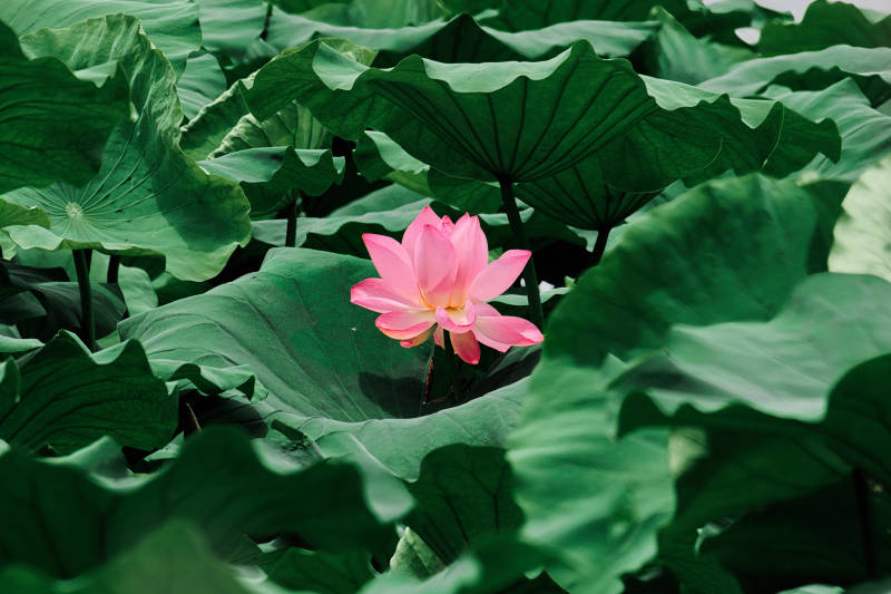荷叶丛中一朵粉莲