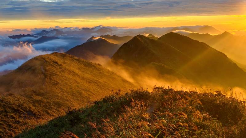 黄连盂山巅晨曦 云海金光