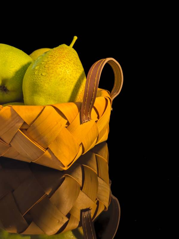 竹篮里的青梨静物图