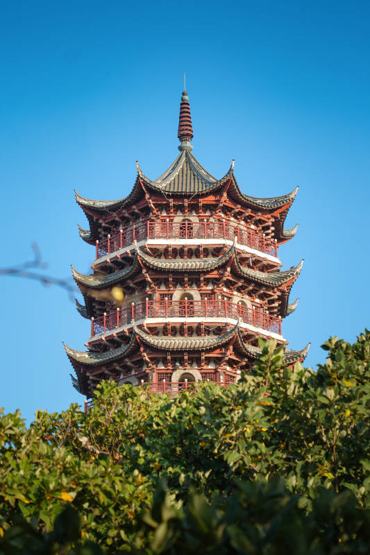 昙华寺瑞应木塔 古塔映水 蓝天晴朗