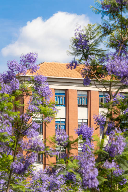 蓝花楹映衬校园美景