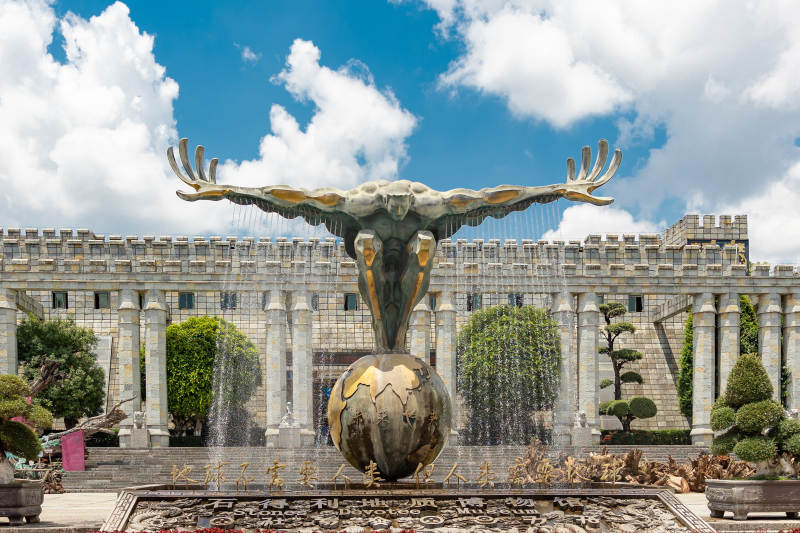 城堡前的雕塑喷泉--石林喀斯特地质博物馆