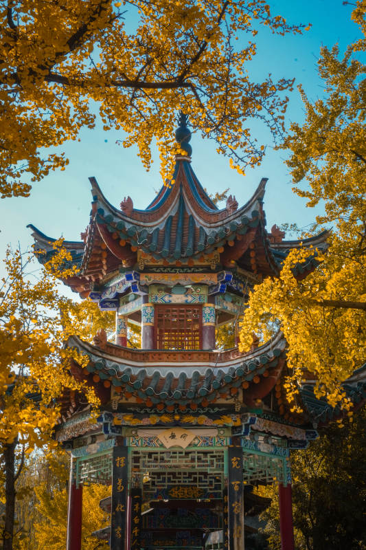 翠湖公园秋色古亭 金叶环绕