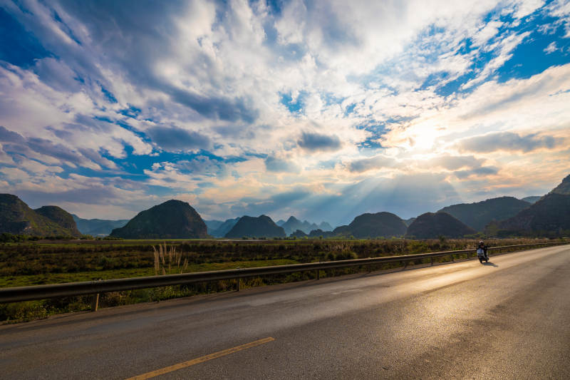 普者黑山间公路夕阳美景