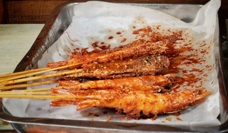 烤虾串美味诱人