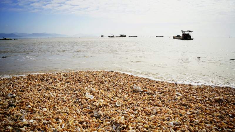 蚝壳堆叠的滩涂
