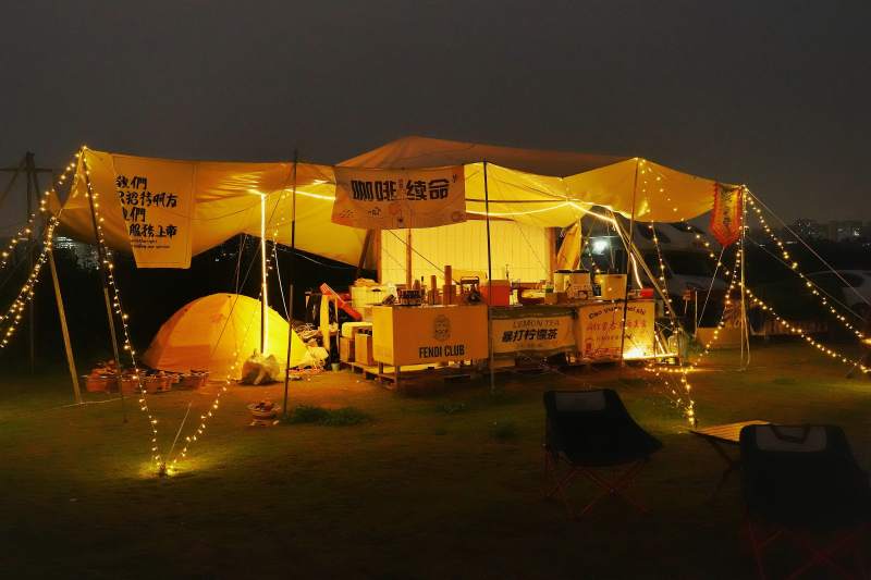 夜幕下的露营咖啡摊
