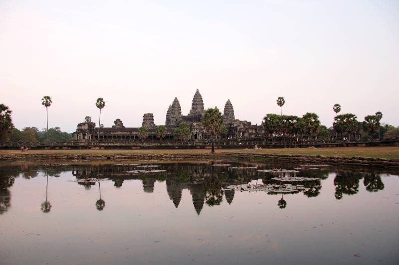 柬埔寨吴哥窟倒影静谧湖
