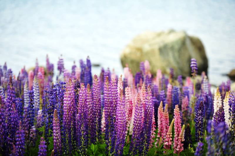 新西兰湖畔鲁冰花花海