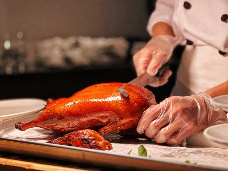 烤鸭切片准备中