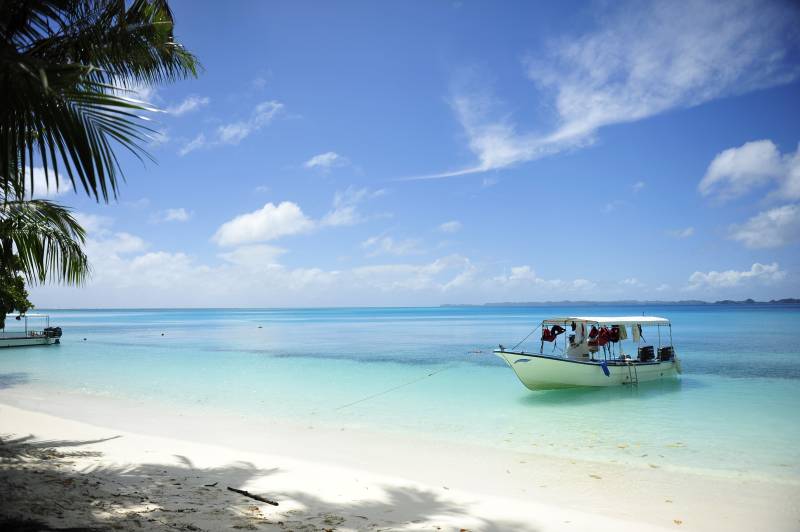 帕劳热带海滩与小船