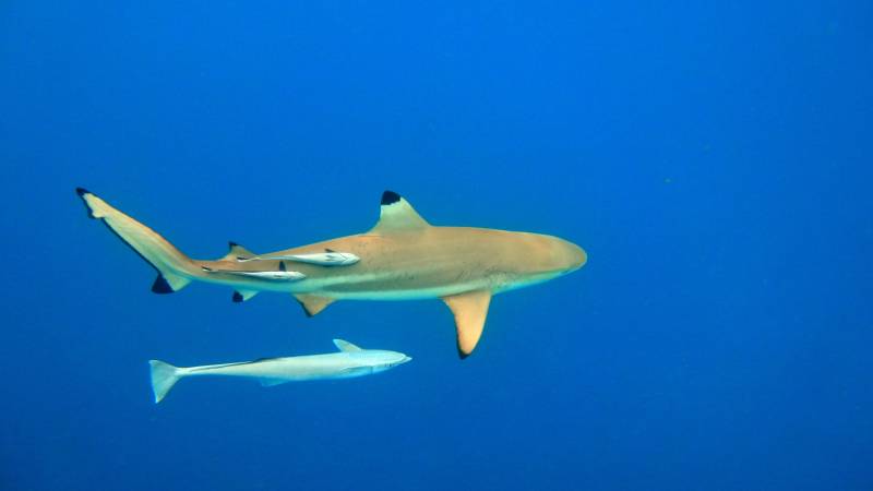 深海鲨鱼与小鱼共游