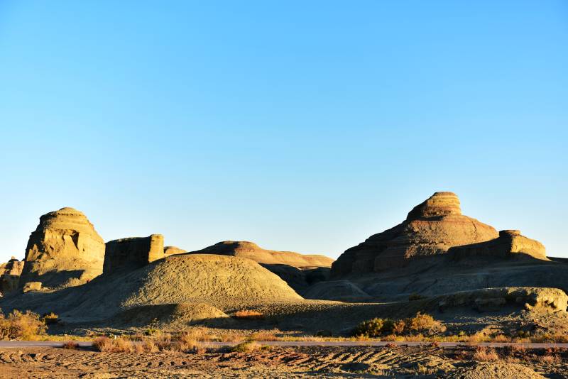 新疆 魔鬼城 沙漠奇岩 蓝天映衬