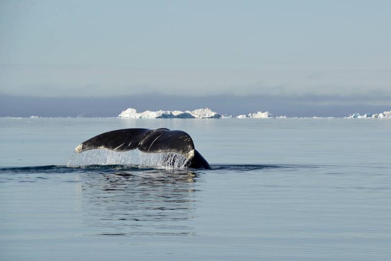 格陵兰岛 独角鲸 鲸鱼跃出水面 冰川背景