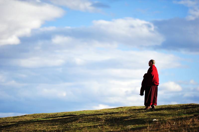 草原上的僧侣与孩子