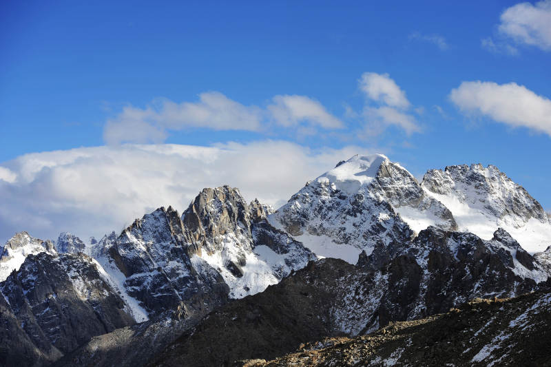 四川省甘孜藏族自治州 雪山之巅 蓝天白云
