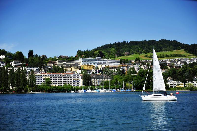 瑞士湖畔帆影 城市风光