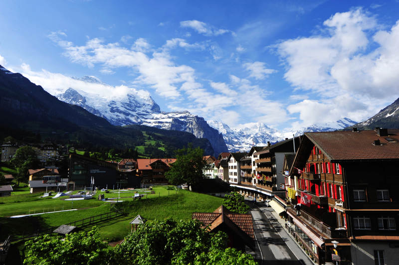 瑞士小镇风景与雪山风光