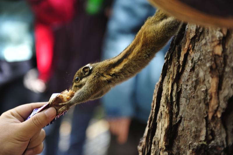 松鼠伸手接食物