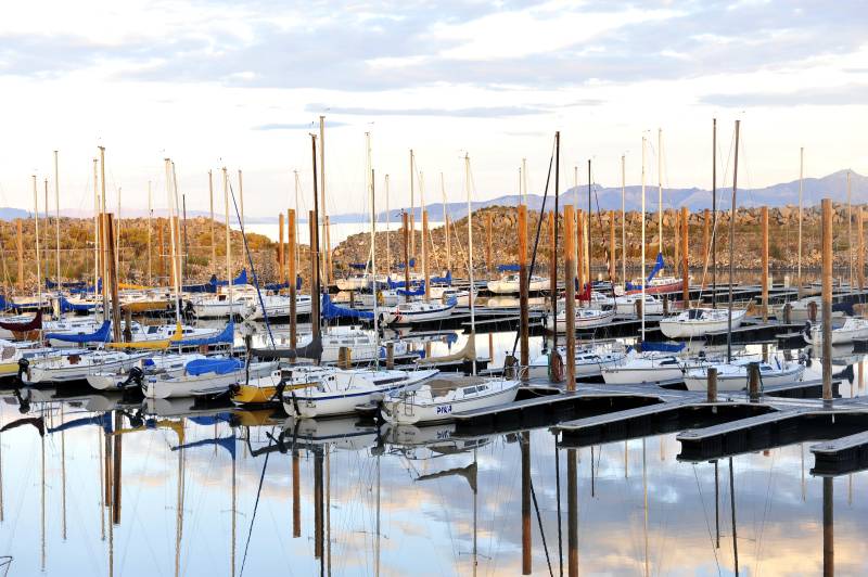 美国盐湖城宁静的码头与倒影