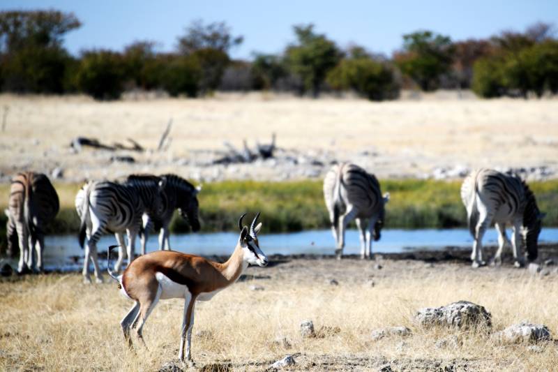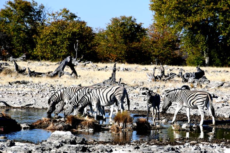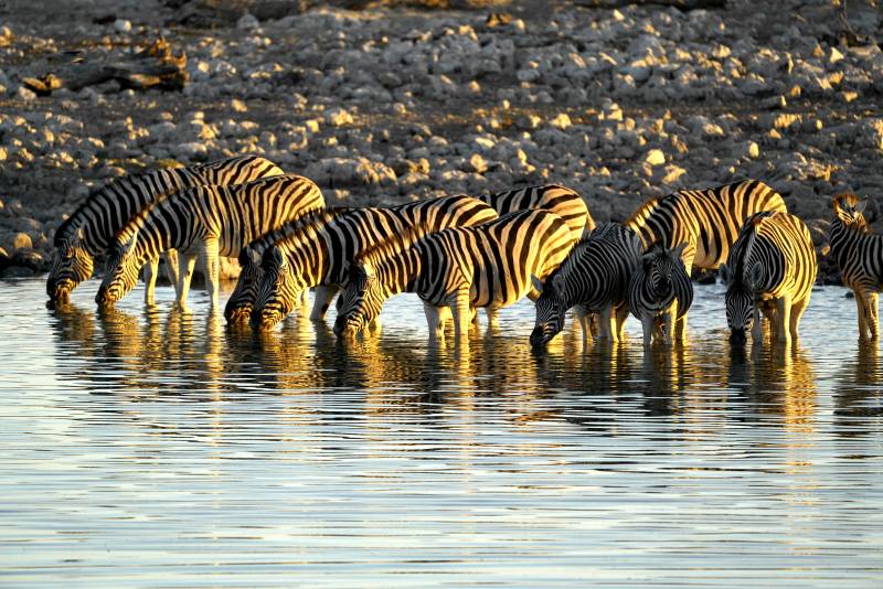 纳米比亚草原上的斑马群饮水