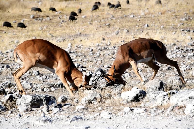 两只羚羊在争斗