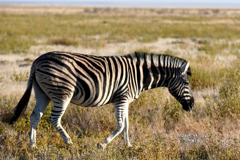 斑马漫步在荒野小径上