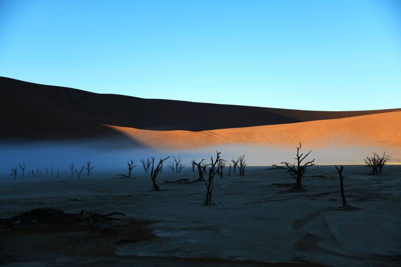 纳米比亚沙漠晨曦 枯树剪影