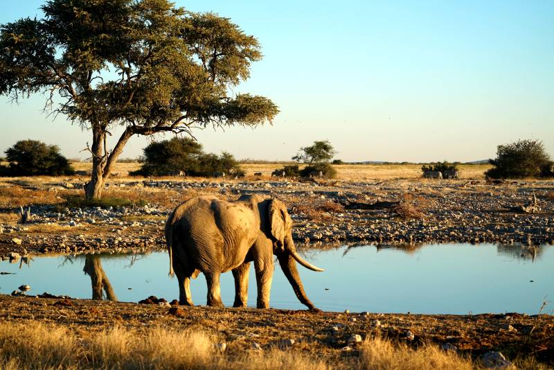 纳米比亚大象过马路 车辆静候