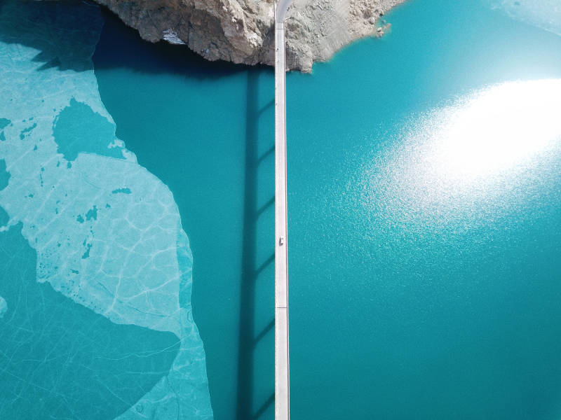 新疆班迪尔蓝湖 湖面桥影 静谧之美