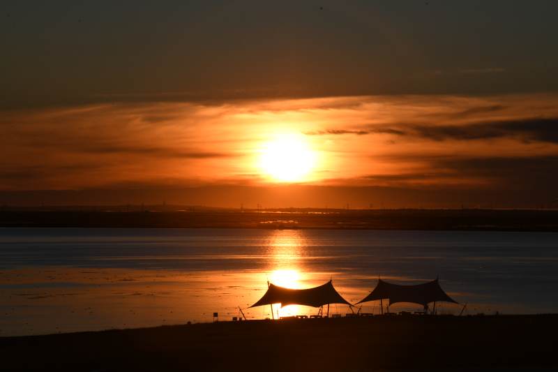 夕阳下的帐篷剪影