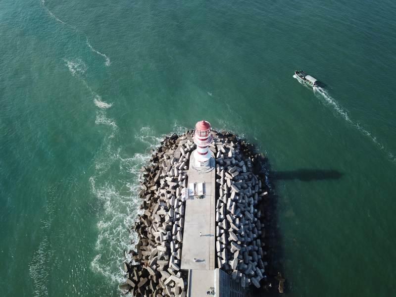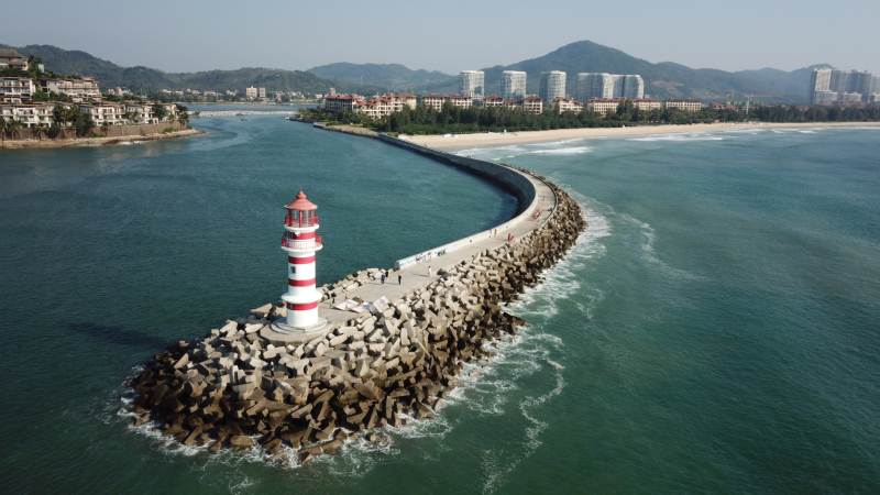 万宁灯塔与岩石堤坝
