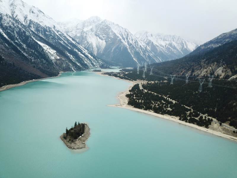 西藏雪山下的碧蓝湖泊