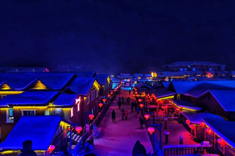 中国雪乡夜景 灯火辉煌