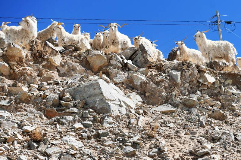 山羊群在岩石上休息