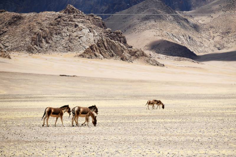 青藏高原荒漠中的野驴群