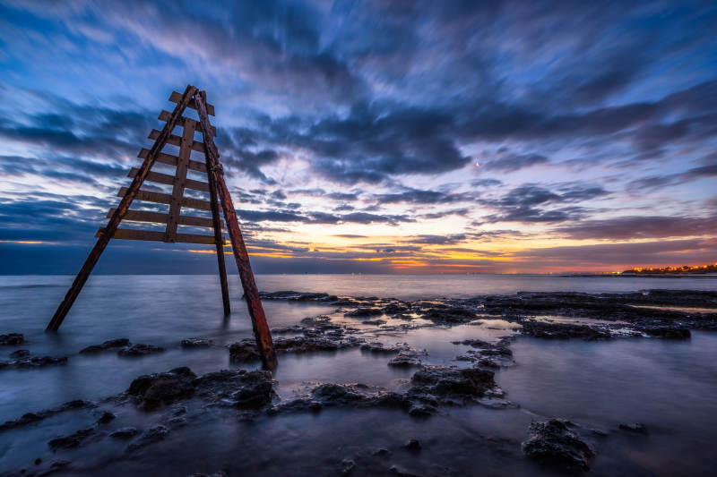 墨尔本暮色海岸废弃航标