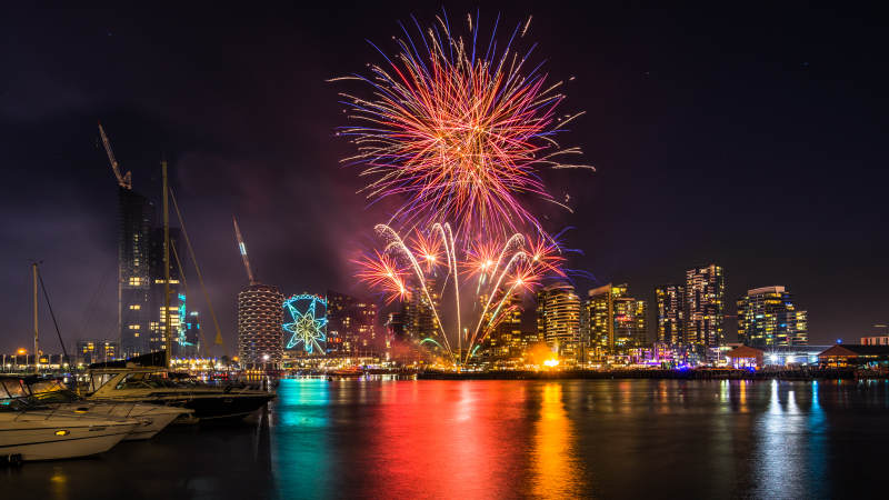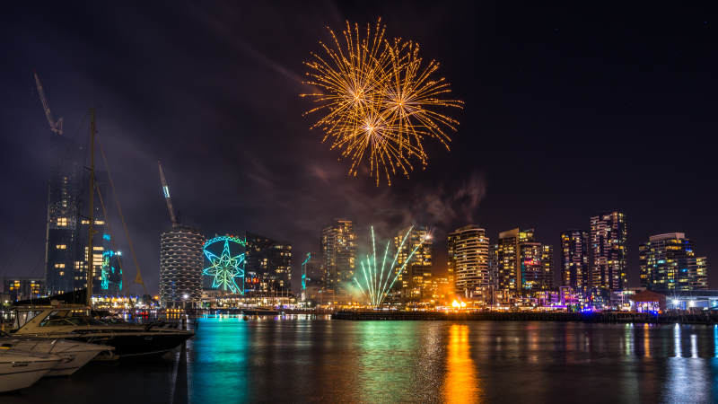 墨尔本雅拉河夜景烟花璀璨绽放