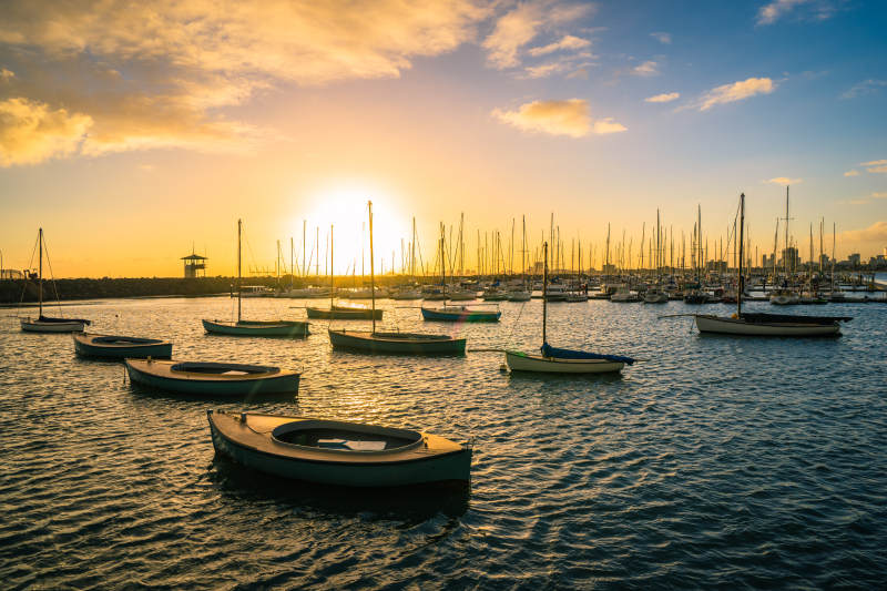 夕阳下的墨尔本st kilda码头帆影