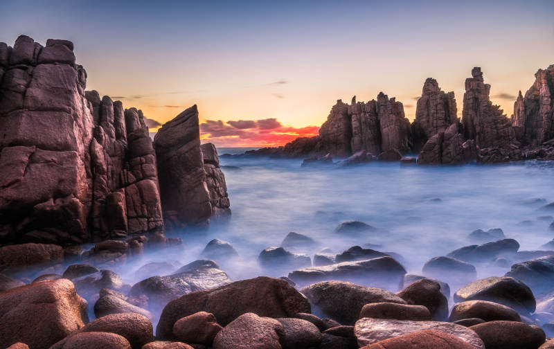 墨尔本菲利普岛日落岩岸
