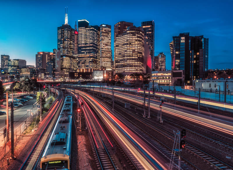 墨尔本城市夜景铁轨光影