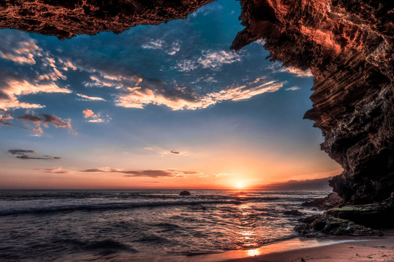 墨尔本南端16号海滩洞穴日落