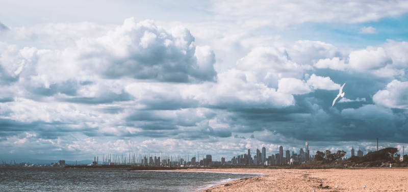 墨尔本城市天际线与海滩