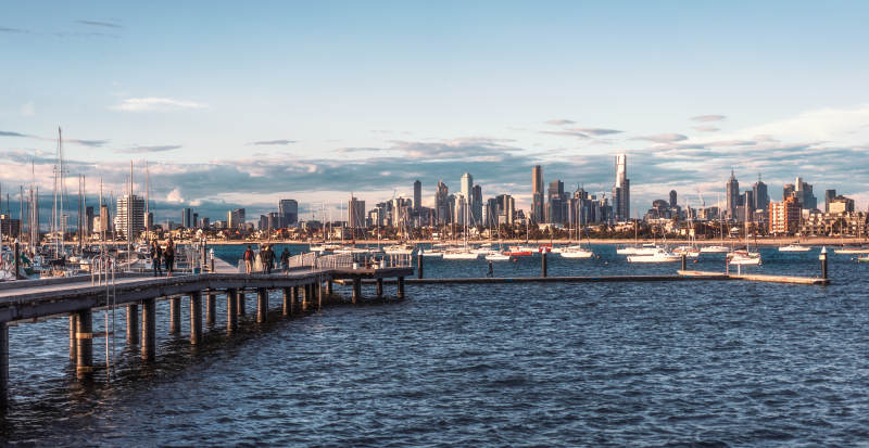 墨尔本城市天际线与码头
